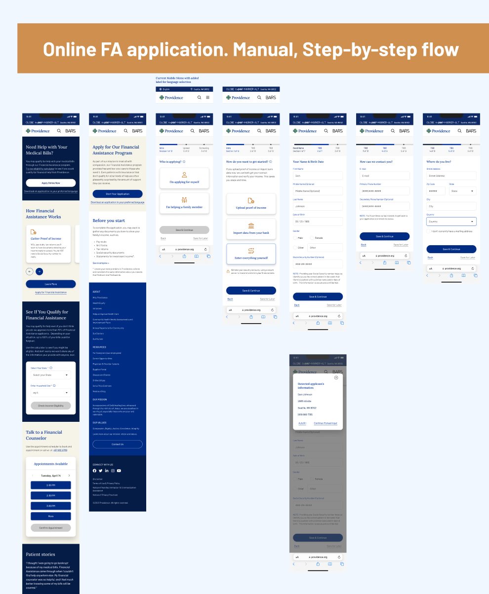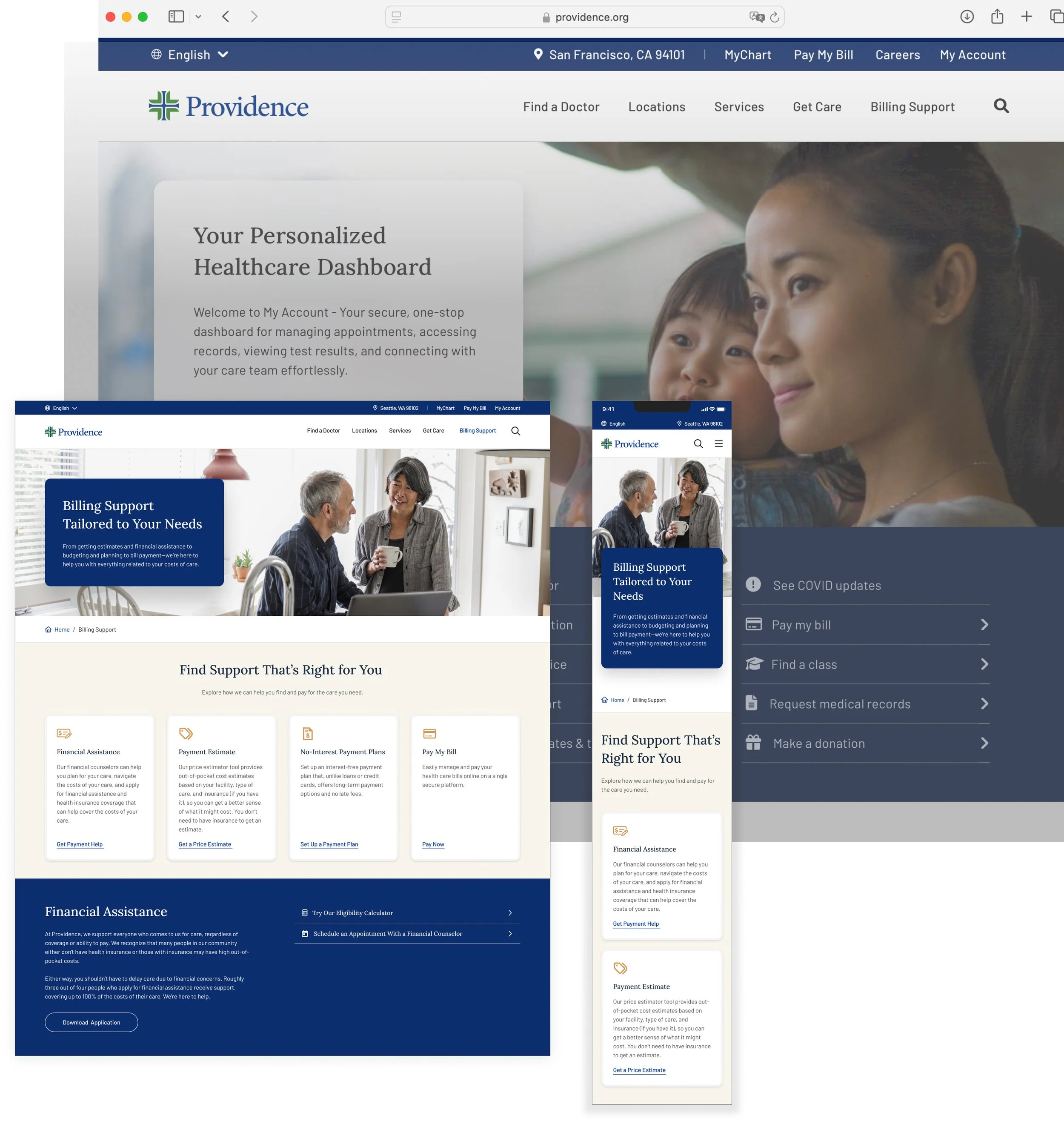User-Centric Design Enhancements: Optimized task flows for Online Billing Payment and Financial Assistance, creating a user-focused financial content strategy for Providence.org.