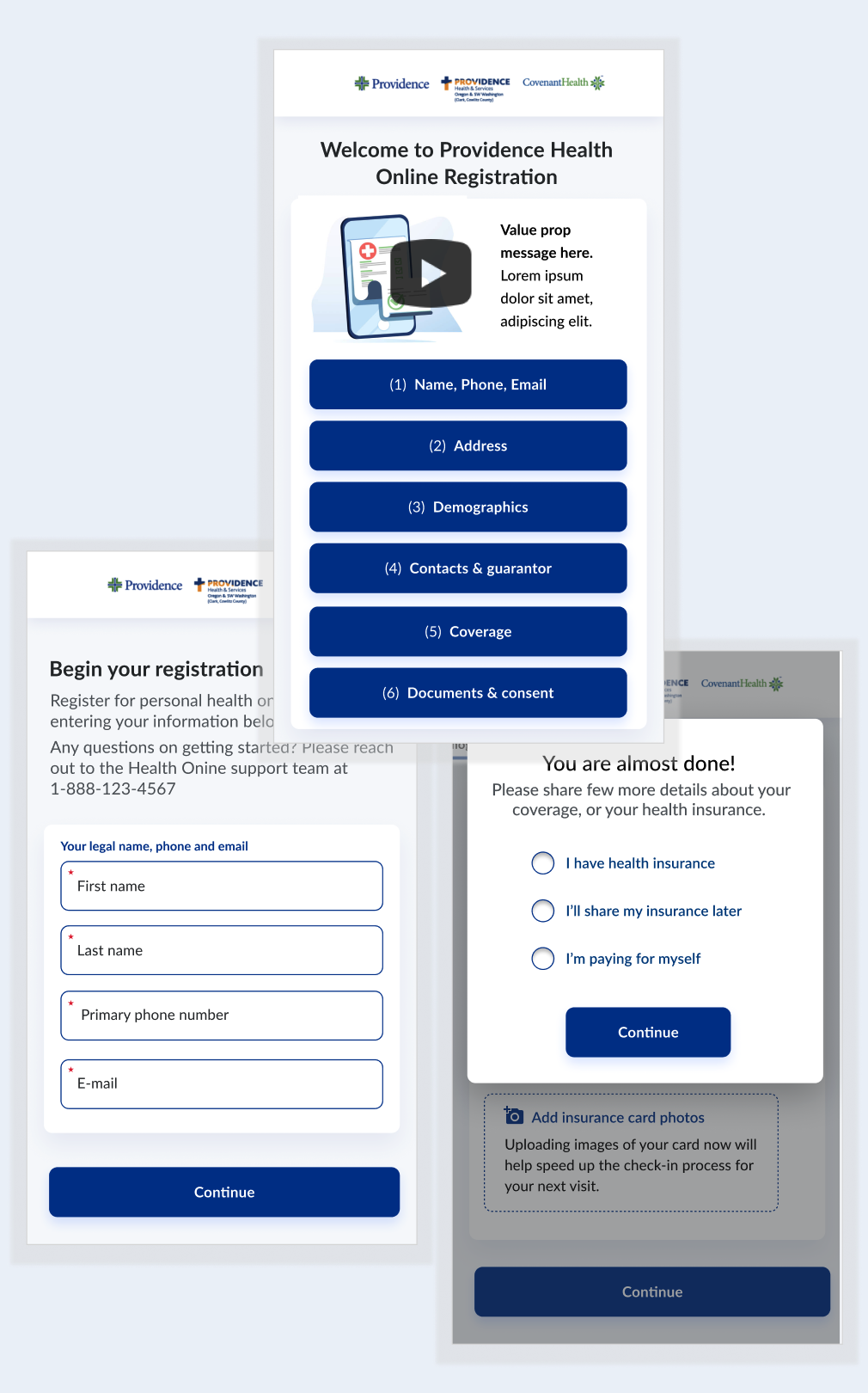 Project Overview: The goal of this project was to enhance financial outcomes for both Providence's customers and caregivers by delivering a memorable and engaging first impression. We aimed to provide a streamlined, fully digital registration process for patients, tailored to their unique needs, and to reduce manual processes for caregivers, enabling them to focus more on patient interactions.